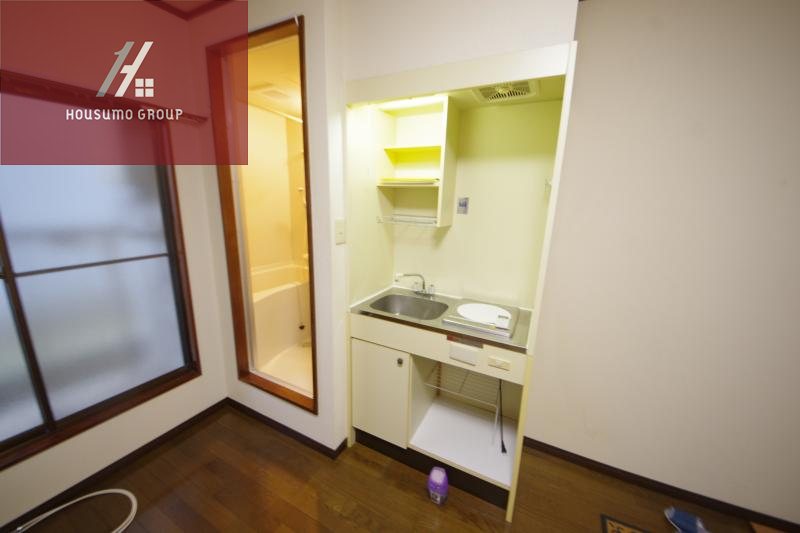 キッチンはコンパクトな1口IHキッチンを完備。キッチン株にミニキッチンを設置できるため、自炊派の方でも使いやすく工夫されています。調理スペースはありませんが、作業台代わりになるラックやシンク上トレーなどで工夫すれば、簡単な自炊にも対応可能。出張が多く外食中心の方や、軽めの自炊しかしない方にはちょうどいい仕様です。
