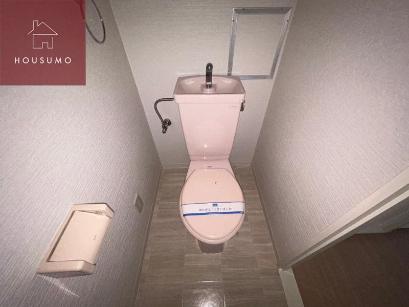 トイレは間取りの中心に位置しているので、各部屋からのアクセスが良好◎清潔な空間を保ちやすく、来客時にも安心して利用可能。温水洗浄便座は備わっていませんが、その分シンプルでお掃除がしやすいのもメリット。自分好みの便座カバーや収納アイテムを追加して、快適にアレンジできる点も魅力です。