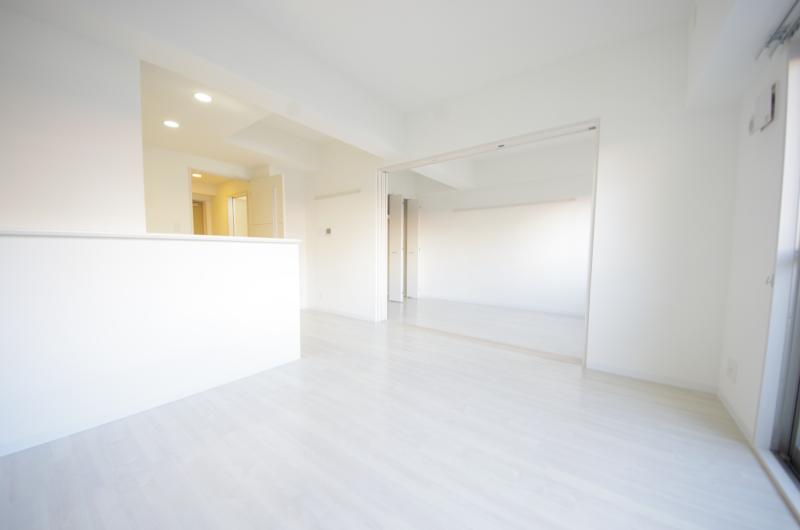 南向きの窓から明るい光が差し込む11.2畳のリビングダイニングは、白基調で明るくどんな家具家電とも相性がよく、毎日の生活を気持ちよく彩ります。カウンターキッチンを採用しており、料理中もリビングの様子を感じられる設計。家事の効率が上がるだけでなく、ゲストとの会話も楽しめる空間です。リビングと洋室は引き戸で仕切られており、開ければ広々とした空間、閉めれば落ち着いたプライベート空間として活用できます。