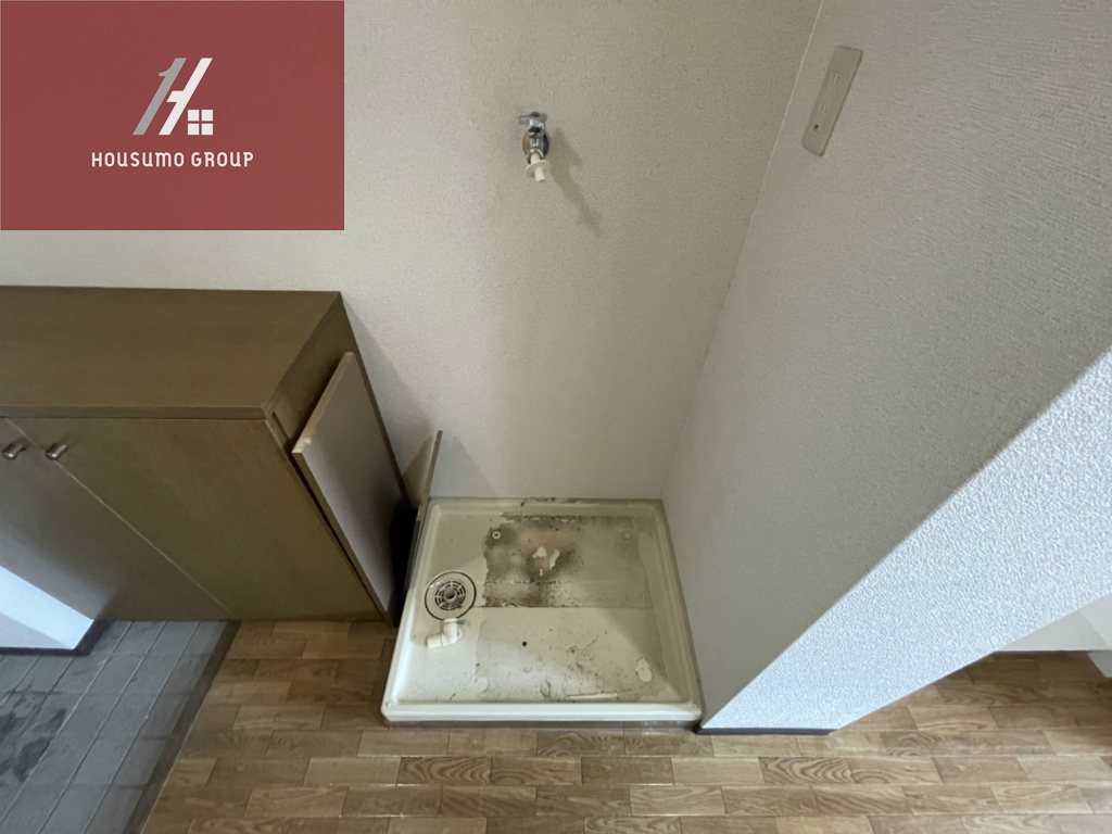 脱衣室はありませんが、バスルーム前のキッチン横には洗濯機置き場があり、天気に左右されず室内で洗濯を完結できるのもうれしいポイント。限られたスペースを有効活用できる、シンプルかつ実用的な設計です。