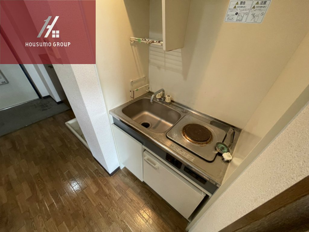 キッチンは1口IHコンロで、火を使わない安心設計なので、調理器具の焦げ付きも少なく、掃除も簡単です。さらに、ミニ冷蔵庫があらかじめ設置されているため、引っ越し時に新たに購入する手間も不要。一人暮らし初心者や自炊は最低限でOKという方にもぴったりの、コンパクトながら実用的なキッチンです。