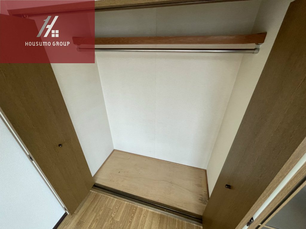 洋室には十分な収納スペースが確保されており、衣類や日用品を整理整頓して収納可能です。1Kでありながらも、生活感を抑えたすっきりした部屋作りが可能です。収納ボックスなどを活用し工夫すれば、一人暮らしでも広々と快適に過ごせます。