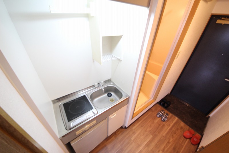 キッチンは1口IHコンロで、火を使わない安心設計なので、調理器具の焦げ付きも少なく、掃除も簡単です。さらに、ミニ冷蔵庫があらかじめ設置されているため、引っ越し時に新たに購入する手間も不要。一人暮らし初心者や自炊は最低限でOKという方にもぴったりの、コンパクトながら実用的なキッチンです。