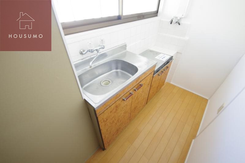 少し奥まった場所に配置されたキッチンは、コンパクトながらも使いやすい造りです。コンロは自分で設置するタイプなので、ライフスタイルに合わせて一口や二口などを自由に選べます。前面には窓があり、自然光が差し込む明るい空間で料理中も気持ちよく過ごせ、換気もしやすく、調理のにおいがこもりにくいのも嬉しいポイント。ミニマムな暮らしにぴったりな、必要なものだけを整えたシンプルなキッチンです。