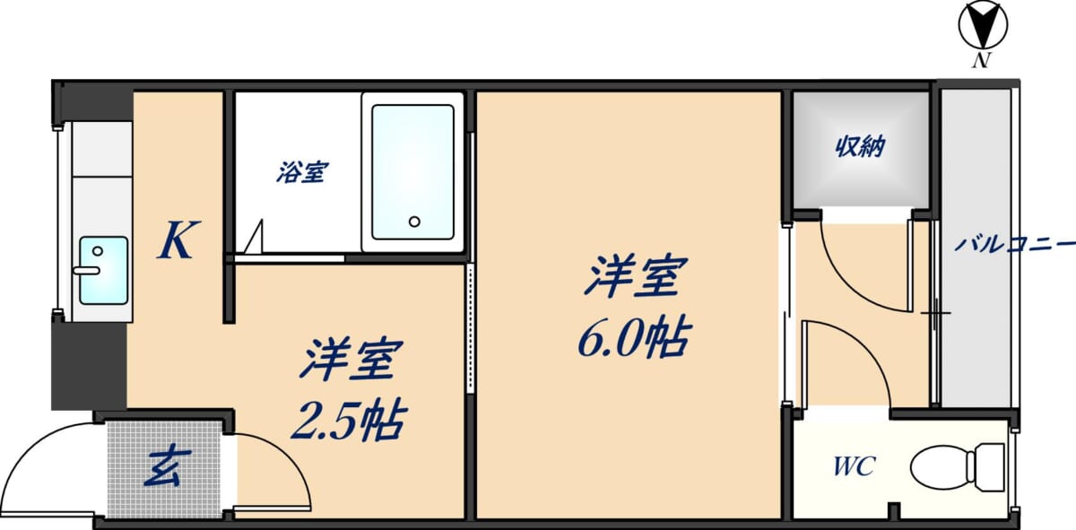 コンパクトながらも使い勝手の良い2Kタイプは玄関を入るとすぐに2.5畳の洋室があり、ワークスペースやミニリビングとしても使える空間です。引き戸を開けると、奥には6畳の洋室が広がり、寝室としてゆったり過ごせるプライベート空間に。西向きのお部屋なので、午後から夕方にかけて柔らかな光が差し込み、部屋全体が温かみのある印象に。日中の明るさを保ちながらも、夕暮れには心地よい西日の光で一日の疲れを癒やしてくれます。