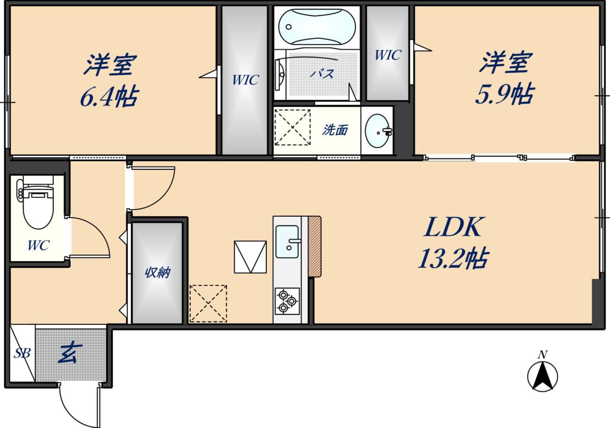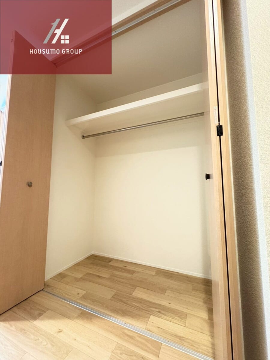 物件の大きな魅力のひとつが、各部屋に備えられたウォークインクローゼットです。各洋室どちらにも設置されており、衣類だけでなく季節用品や趣味のアイテムまでしっかり収納可能です。さらに玄関すぐには大きめの収納スペースもあり、ストック用品から掃除道具など生活に必要なアイテムをまとめて整理できます。家族全員の荷物を効率よく収納できるため、リビングや寝室をスッキリ保て、生活空間が広く快適に使えるのが嬉しいポイントです。