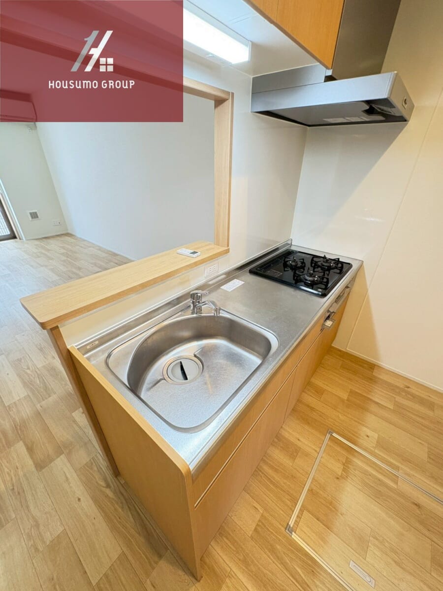 カウンターキッチンは、使い勝手の良い3口ガスコンロに加えグリル付きなので、同時調理が可能で料理の幅が広がる充実仕様。引き出し式の収納を備えており、鍋やフライパン、調理器具も整理しやすく、取り出しやすい設計です。カウンター前に椅子を置けば、朝食や軽食を楽しむスペースとしても活用可能。小さなお子さんがいる家庭は調理中にも目を配ることができ、機能性と利便性を兼ね備えた、毎日の料理が快適になるキッチンです。