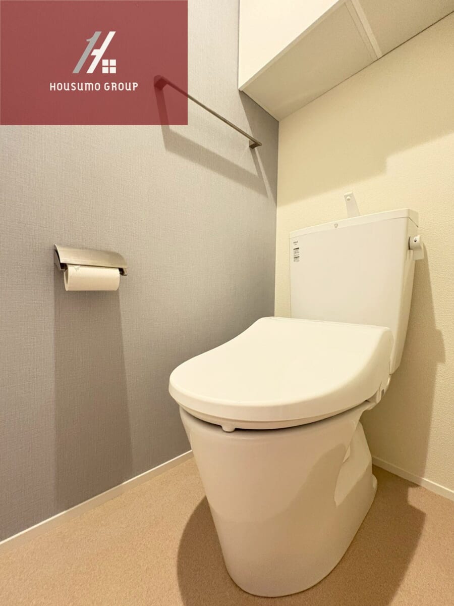 トイレは、温水洗浄便座付きで機能性も高く、清潔感のある快適な空間に仕上がっています。シンプルでありながらも生活に欠かせない設備がしっかり整っており、来客時にも安心です。落ち着いた雰囲気で日常のちょっとした時間も快適に過ごせます。
