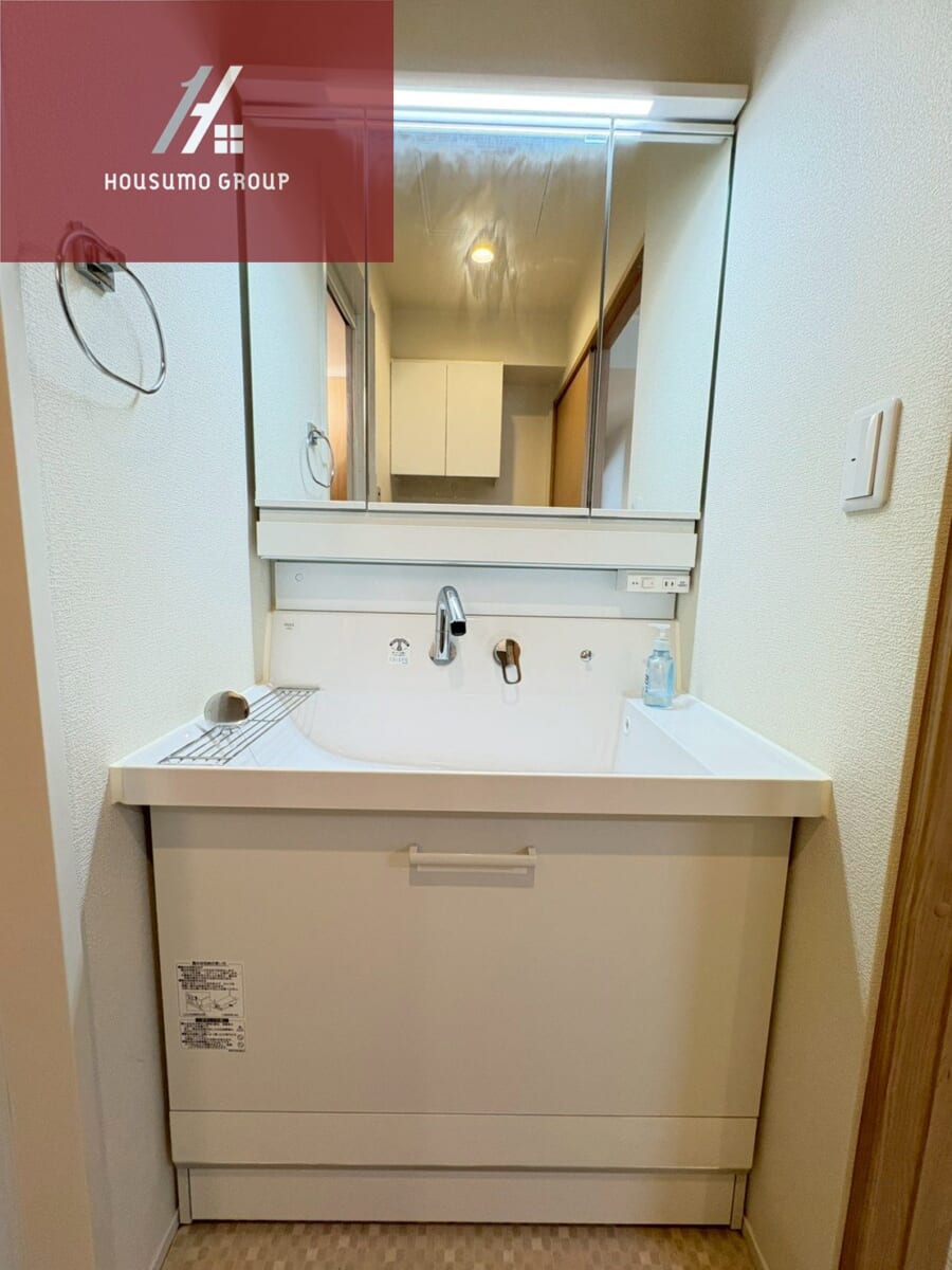 脱衣室には独立洗面台を完備されているので、朝の身支度や帰宅後の手洗い、夜のスキンケアタイムまで、使い勝手がよくストレスのない設計です。鏡裏収納付きですっきりとした清潔感ある見た目に◎脱衣室がしっかりと区切られているので、来客時のプライバシーもしっかりと確保できます。
