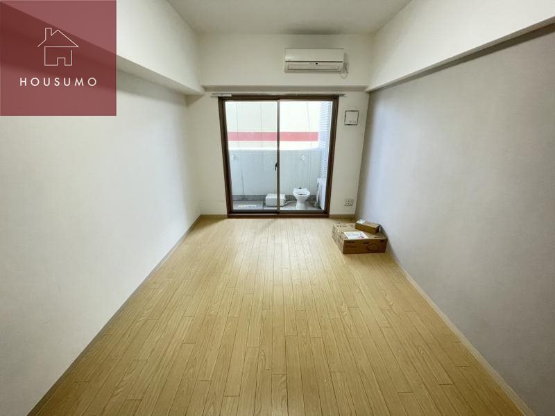 7.8畳の居室は、ナチュラルカラーのフローリングと壁で統一され、家具の配置もしやすいシンプルな空間です。バルコニーに面した大きな窓からは柔らかな東向きの光が差し込み、朝の目覚めも爽やかになります。ベッドやデスク、収納家具を効率よく配置できるので、一人暮らしのライフスタイルに合わせた自由で余裕のあるレイアウトが可能です◎