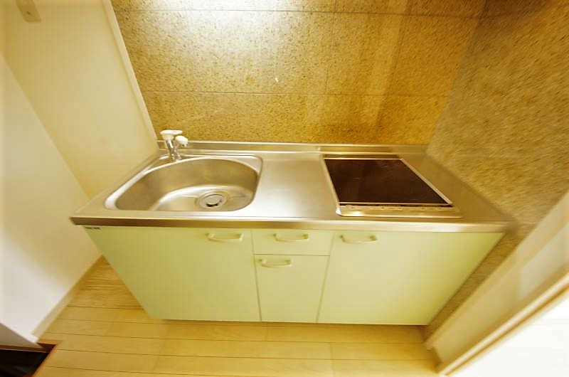 1Kタイプでも無理なく使えるコンパクトキッチンは、2口IHで料理の幅も広がります。上部収納は最小限ですが、キッチン周りに棚やラックを置けるスペースが確保されており、食器や調味料を効率的に整理可能です。白を基調とした清潔感あるデザインで、毎日の料理が楽しくなる空間です。忙しい転勤者の方でも、シンプルな動線でスムーズに料理ができる工夫が施されています。