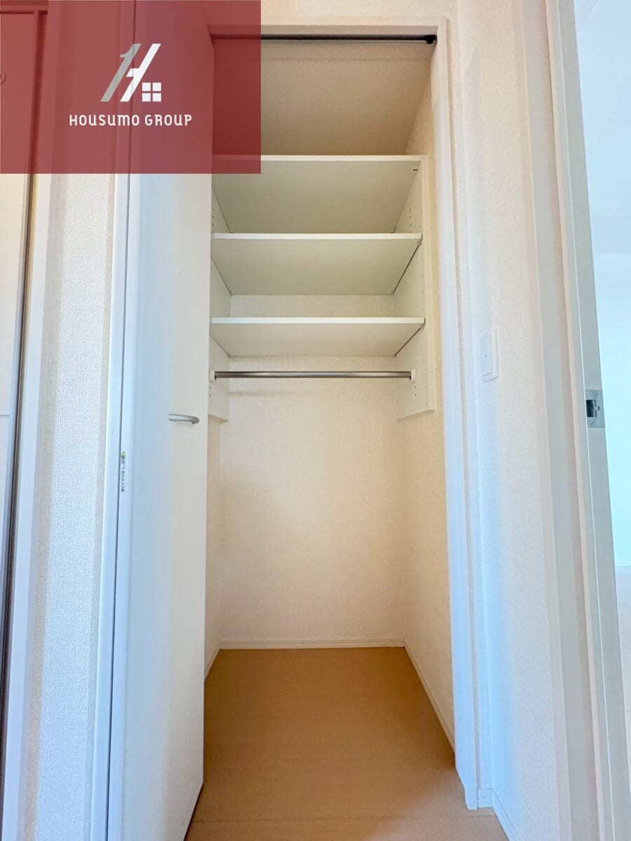 洋室には、衣類から季節家電までしっかりしまえるウォークインクローゼットを完備しており、内部にはハンガーパイプと棚の配置が考えられているため、コートやワンピースなど丈の長い衣類もそのまま収納でき、日々のコーディネートが組みやすくなります。かさばる荷物もまとめて収められるので、部屋の生活感を抑えたい方にぴったりです。さらに、廊下にも収納スペースがあり、日用品のストックや掃除機、書類などの“見せたくないもの”をしまうのに便利で、動線上に収納があることで片付けがしやすく、自分らしいシンプルで整った暮らしが実現します◎
