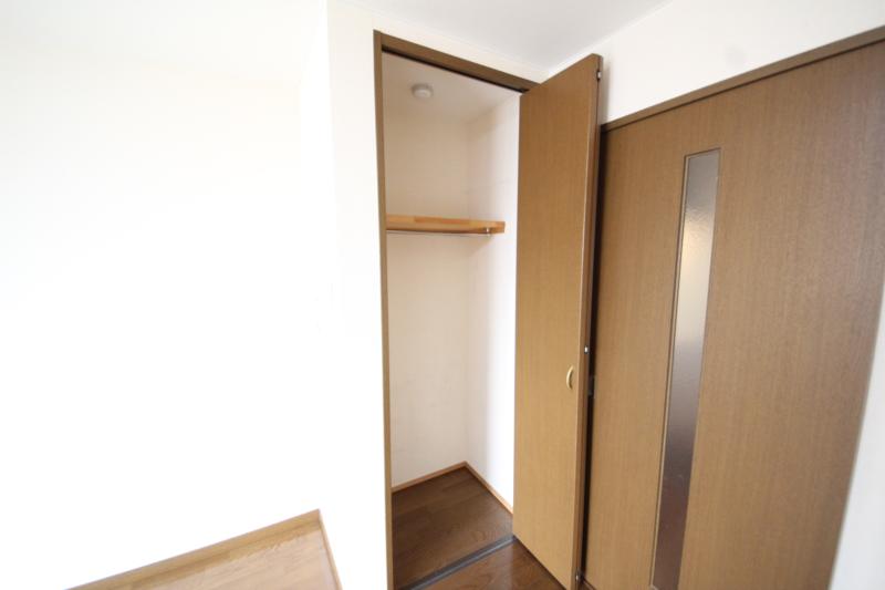 洋室には、使い勝手のよいコンパクトな収納が2つ備わっており、アイテムごとに分けて整理できるのが大きな魅力です。衣類をかけておけるハンガー収納として活用したり、もう一つを日用品やバッグ、小物類の定位置として使ったりと、暮らし方に合わせて柔軟に使い分けができます。収納が複数あることで、室内に置く家具も最小限に抑えられ、9.5畳のゆったりした洋室をより広々と感じられるのもポイント。ナチュラルで落ち着いた室内の雰囲気を損なわず、スッキリした暮らしを実現しやすい機能的な収納スペースです◎