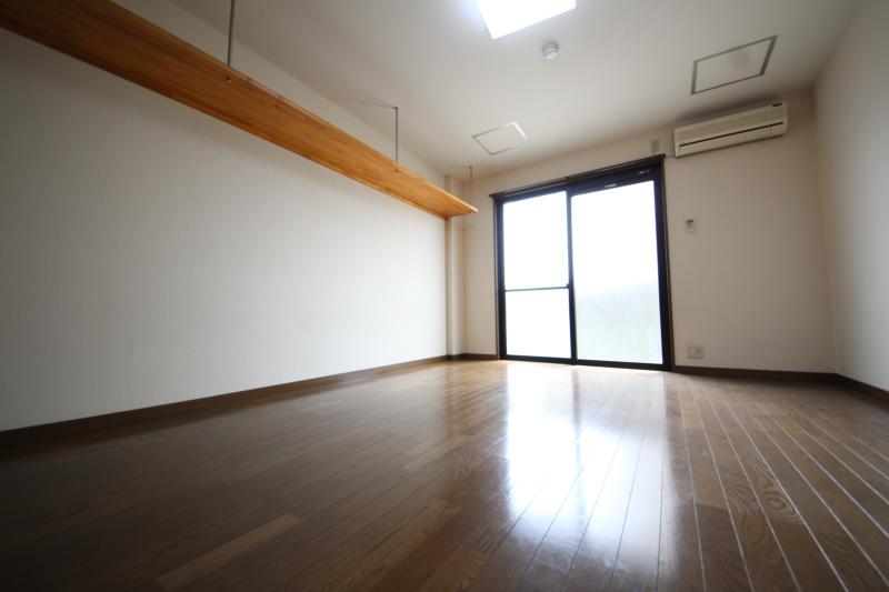 9.5畳という広さが魅力の洋室は、ワンルームながら家具のレイアウトがしやすく、生活動線が自然と整うゆったりとした空間です。南向きの窓からは一日を通して柔らかな光が差し込み、室内は明るさだけでなく、ナチュラルで落ち着いた雰囲気に包まれています。木目調のフロアがあたたかみを演出し、シンプルな内装と相まって「帰りたくなる部屋」を感じさせてくれる心地よさがあります◎