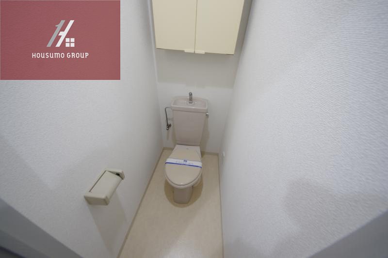 トイレは、空間全体を明るく見せてくれる白を基調とした清潔感のあるデザイン。シンプルながらも圧迫感がなく、毎日自然に使いたくなる心地よさがあります。温水洗浄便座は備わっていませんが、その分シンプルでお掃除がしやすいのもメリット。自分好みの便座カバーや収納アイテムを追加して、快適にアレンジできる点も魅力です。