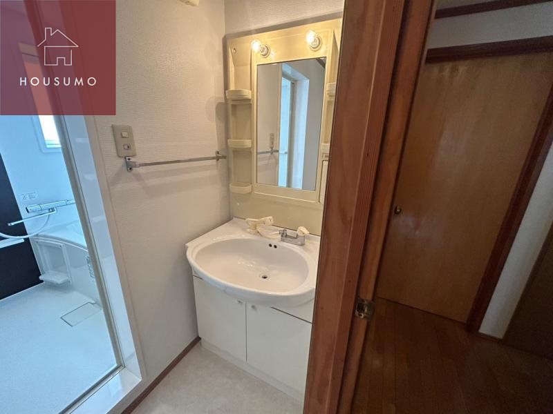 脱衣室は、浴室と洗面スペースをスムーズにつなぐ実用的な空間設計。入浴前後の動線が整理されており、着替えや身支度を落ち着いて行えるのが特徴です。洗濯機置き場も近くにあるため、「洗う・干す・しまう」の家事動線が短く、日々の生活効率を高めてくれます。限られたスペースながらも、生活感が出やすい場所だからこそ、使いやすさを重視した配置で、朝の忙しい時間帯や帰宅後のリラックスタイムでも、ストレスを感じにくい脱衣室となっています。