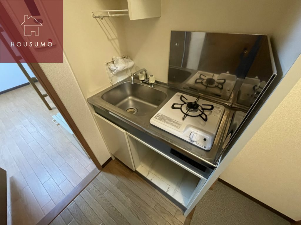 キッチンはコンパクトながら、調理に必要な動線がしっかり確保され、キッチン下にはミニ冷蔵庫も設置可能なので、自炊派の方でも使いやすく、日常的な料理から簡単な作り置きまで対応できます。1Kタイプなので居室と距離があるため、においや音が居住スペースに広がりにくい点も嬉しいポイントです。
