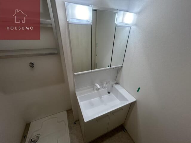 脱衣所は、明るく清潔感のある使いやすい空間です。独立洗面台が設置されており、身支度やスキンケア、ヘアセットまでスムーズに行えます。洗面台の横に洗濯機置き場があり、洗濯動線がコンパクトで家事効率も良好。水回りが一か所にまとまっているため、生活動線がシンプルで使い勝手の良いレイアウトです。1LDK賃貸で独立洗面台付き物件を探している方に適した脱衣スペースとなっています。