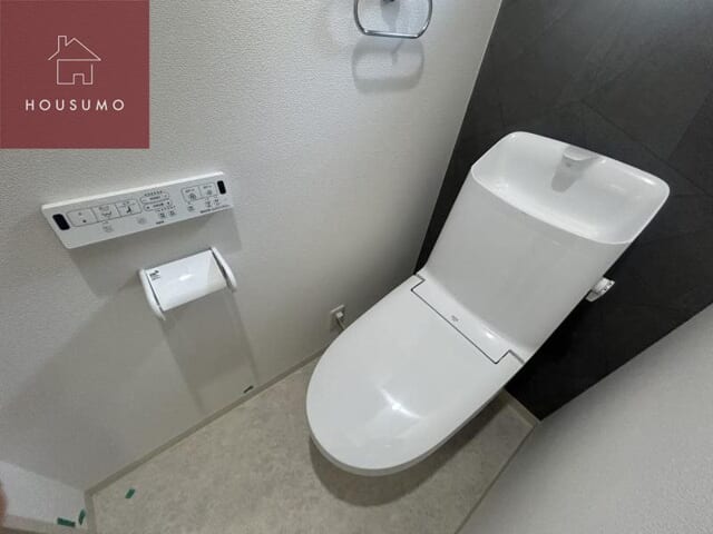 トイレは、落ち着いたブラウン基調でまとめられた、上品でリラックスできる空間です。温水洗浄便座付きで、快適性と清潔さの両方をしっかり確保。シンプルな設計で掃除がしやすく、日常的なお手入れも負担になりにくい仕様です。色味に統一感があり、生活感を抑えた落ち着きのある雰囲気が特徴。毎日使う場所だからこそ、快適さと使いやすさを重視したトイレ空間です。
