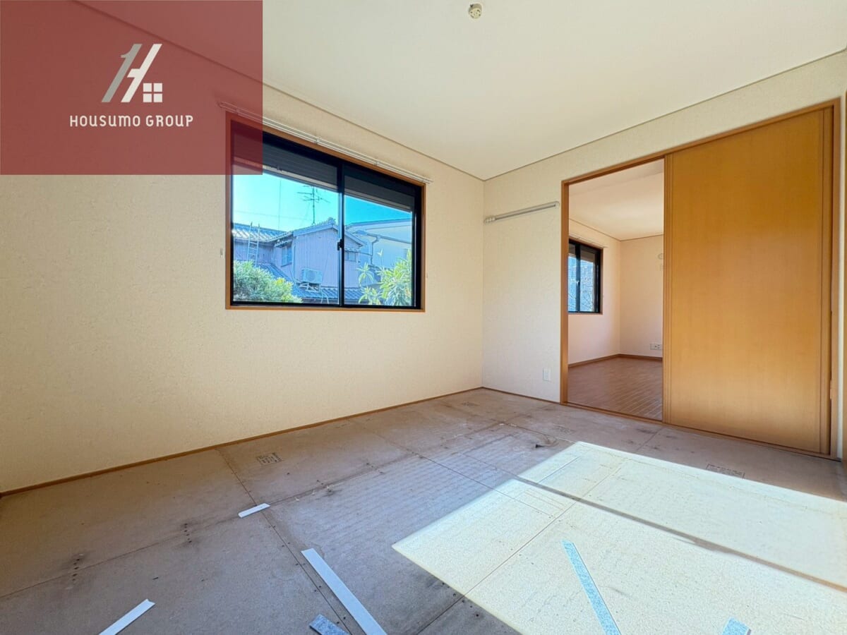 洋室は7.5帖のゆとりある広さで、ベッドやデスクを置いても余裕のある快適な空間です。クローゼット付きで収納力があり、衣類や荷物をすっきり整理できます。リビングと程よく離れた配置のため、寝室や書斎としても使いやすい間取りです。採光もしっかり確保されており、明るく開放感のあるお部屋になっています。用途に合わせて自由にレイアウトを楽しめる、使い勝手の良い洋室です。