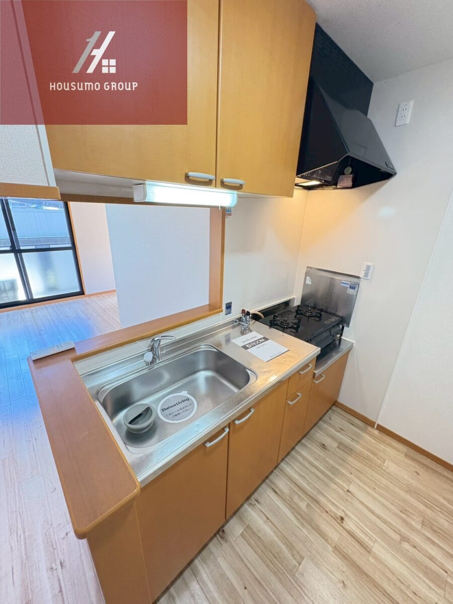 キッチンは作業スペースがしっかり確保されており、調理がしやすい実用的なレイアウトです。上下収納付きで、調理器具や食器をすっきり整理できます。コンロは複数口タイプで、同時調理ができるため時短にもつながります。シンプルで清潔感のあるデザインなので、毎日の料理も気持ちよく行えます。リビングに近い配置で、家族や来客との会話を楽しみながら使えるキッチンです。