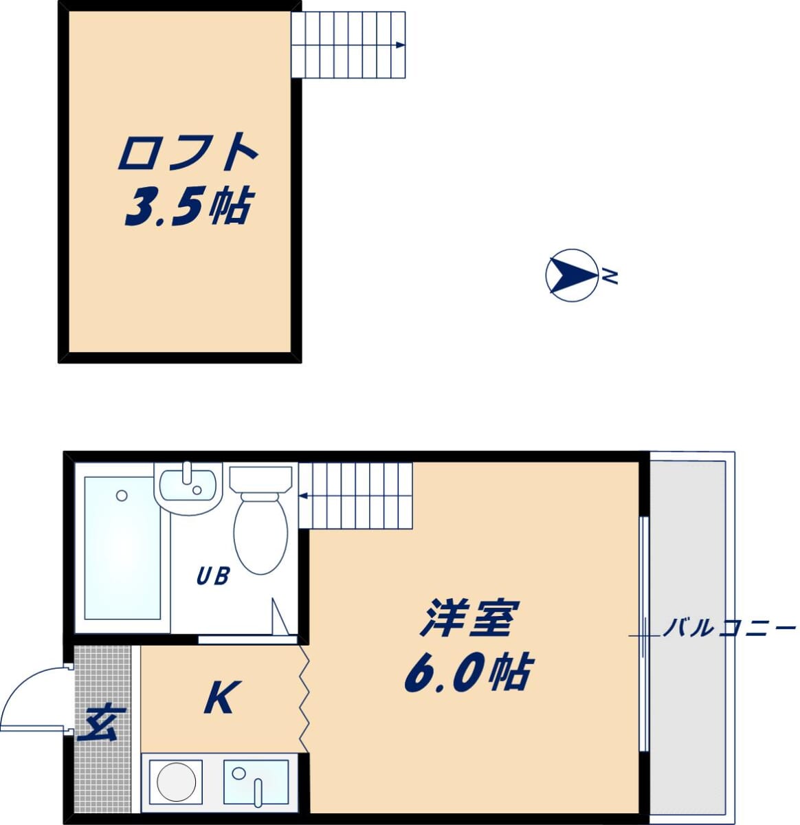 メインの洋室は6.0帖。東向きバルコニーに面しており、朝日が差し込む爽やかな住空間で、ベッド・デスク・テレビ台を配置しても動線を確保しやすい整形タイプ。ワンルームながら圧迫感が少なく、初めての単身生活にもフィットします。東向きのため、夏場は強い西日を避けられるのもメリット。規則正しい生活リズムを作りやすいお部屋です。約3.5帖のロフトスペース付き。寝室スペースとして使えば、洋室をより広く活用可能で、収納スペースとしても活躍し、季節物やスーツケースなどもしっかり置けます。天井高を活かした設計で、ワンルームでも空間を立体的に使えるのが大きな魅力。賃料3万円台でロフト付きという点は、コストパフォーマンスの高さを感じられるポイントです◎